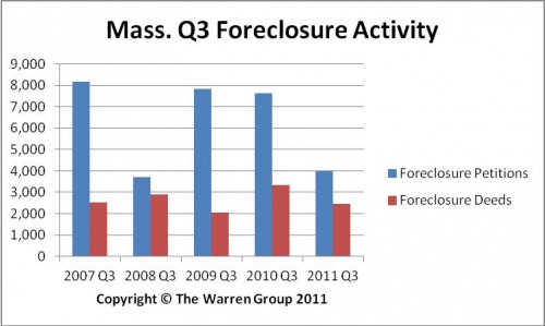 BOSTON, October 20, 2011 – Foreclosure activity statewide dropped again in September, marking the 12th consecutive month that both petitions and deeds declined by double-digit percentages from the same month in the prior year, according to The Warren Group,...
