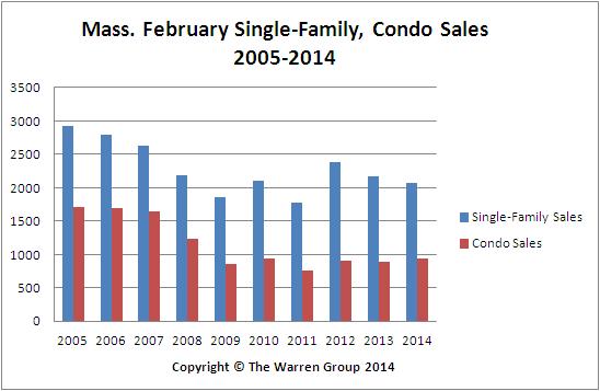 Median Price Of A Condo Rivals Cost Of A Single-Family Home BOSTON, March 26, 2014 – Bay State single-family home sales dropped 4.1 percent in February, according to a new report from The Warren Group, publisher of Banker & Tradesman. This is the third time in the...